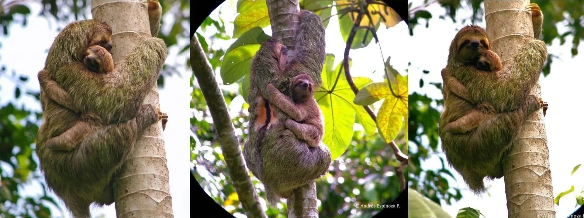 In 2019, wildlife photographer Andres Espinoza captured something astonishing in Manuel Antonio National Park: a wild adult male sloth carrying a baby.