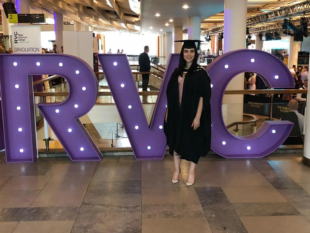 Graduating from The Royal Veterinary College, University of London, in Bioveterinary Science, 2018