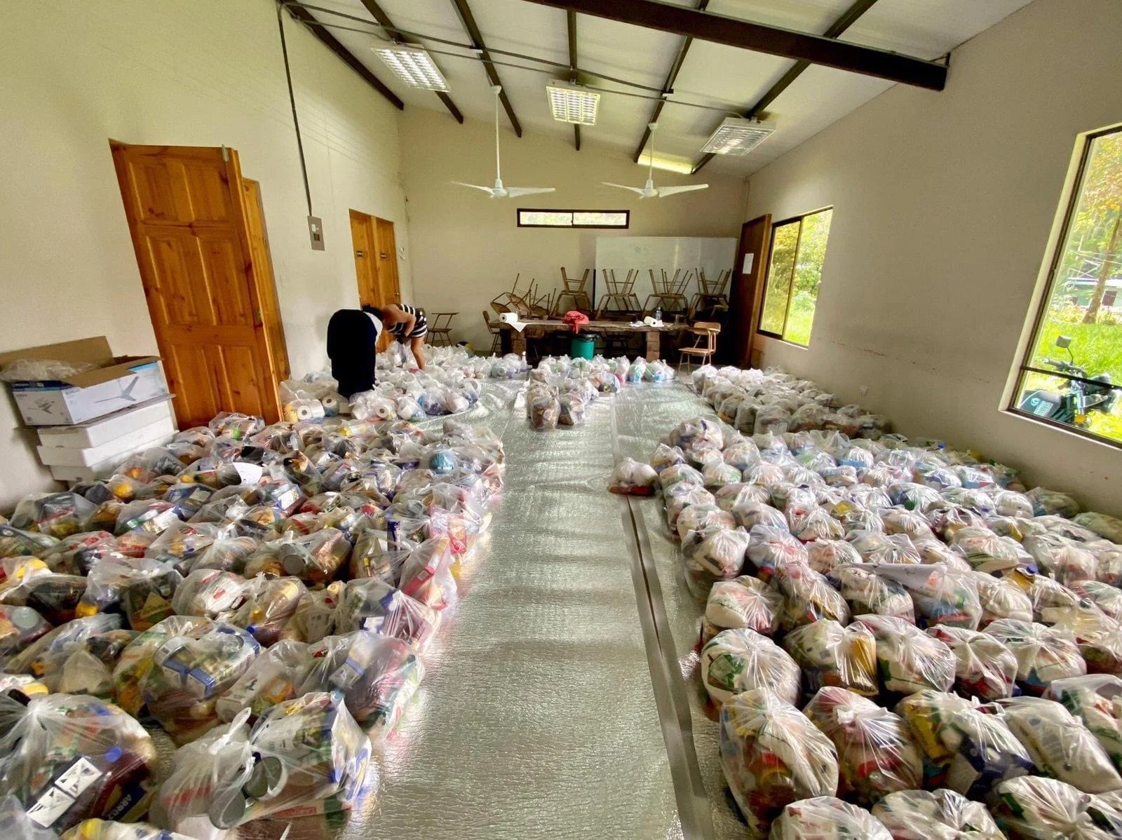 Volunteers prepare food bundles for local families in the South Caribbean through the Food Bank Initiative.