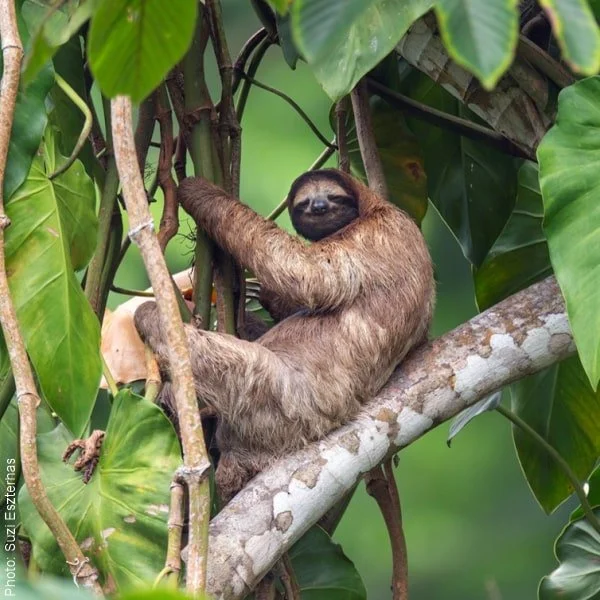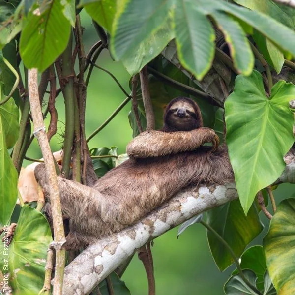 First, it makes us think about the unfair name of these animals, a form of the word 'lazy' in most languages. But even though sloths are not lazy but energy-efficient, it also makes us think about laziness and how in our societies' overfall, being a little bit idle and slowing down is not permitted. If you have today off, you are probably feeling guilty about it.