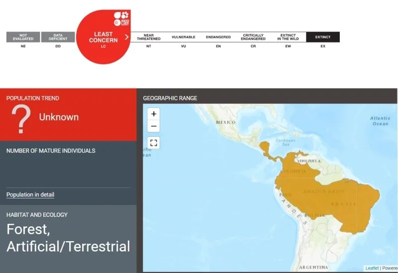 For example, the four “least concern” sloth species all have large population ranges covering many countries in South and Central America, as well as the Amazon rainforest. This means that there are a lot of individual sloths out there–and therefore the risk of all of these individuals becoming extinct overnight is relatively low.