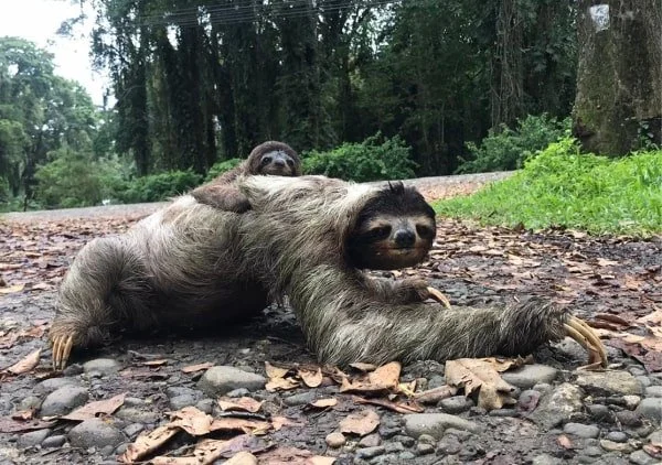 The area where Luna was found is a hotspot for sloth and wildlife spotters. Groups of tourists huddled excitedly together with their phones and cameras out is almost a guaranteed sign of sloth action. This is precisely what caught SloCo founder Dr. Rebecca Cliffe's eye as she drove along the winding beach road after lunch one day, and she was right: a sloth was trying to cross the busy road.