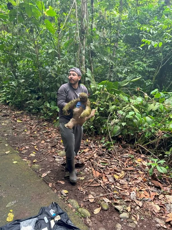 Ezequiel and Mady from Brown University study sloth feces for parasites and dietary composition; They also study their blood and perform various pathogen tests to determine if sloths can spread diseases to humans or vice versa.