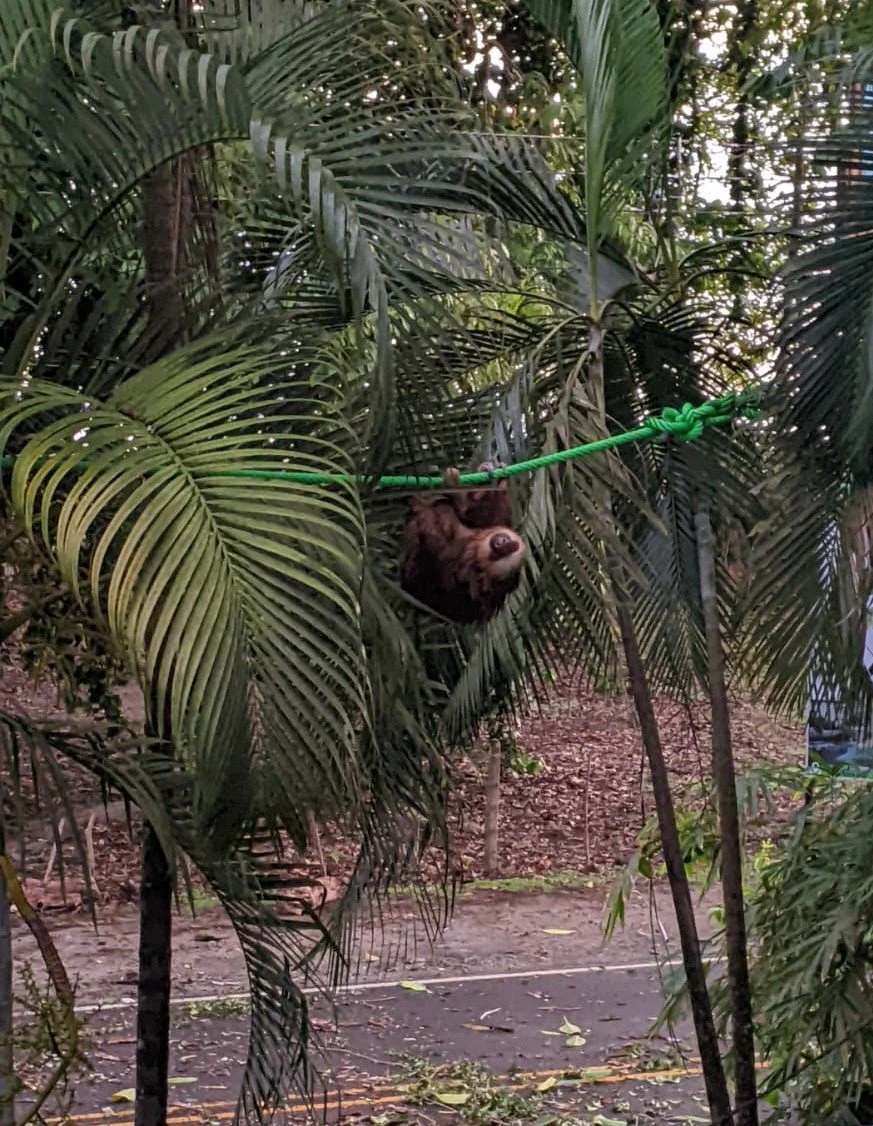Wildlife crossings help sloths and other animals avoid two of the three biggest sloth killers in the South Caribbean: dog attacks, and powerlines.