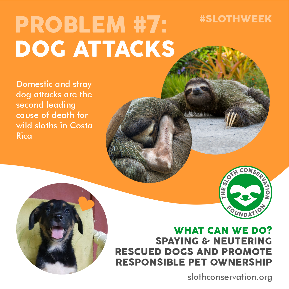 We love dogs, but domestic and stray dog attacks are now the second leading cause of death for wild sloths in Costa Rica. Sloths are not equipped to defend themselves against these attacks because dogs should not be a problem for an animal that lives high up in the trees!