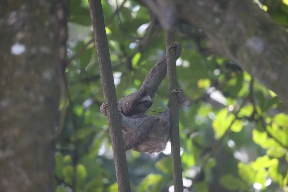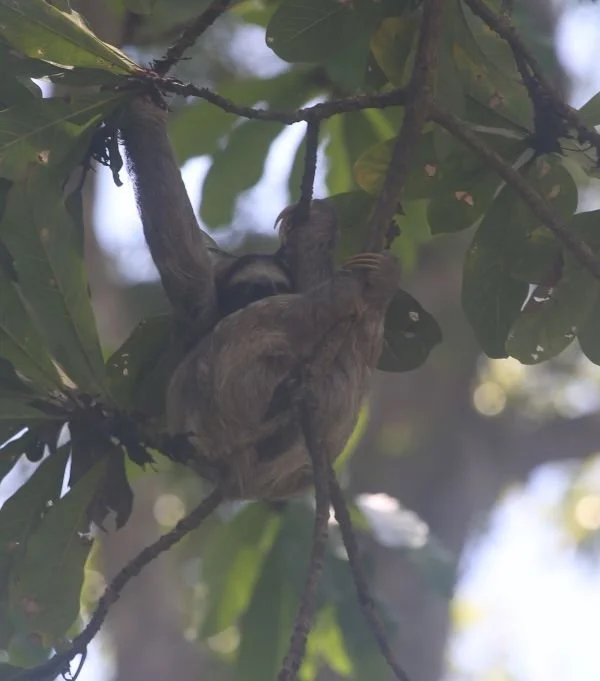 On several tracking days we picked up very strong signals from her collar, sometimes as high as 99, which meant she was definitely nearby. But despite knowing exactly which tree she was in, spotting her was another story. Once, the team found two sloths sharing the same tree, and although one of them was very likely Luiza, she was sitting in a position that completely hid the antenna and her face, making it impossible to confirm.