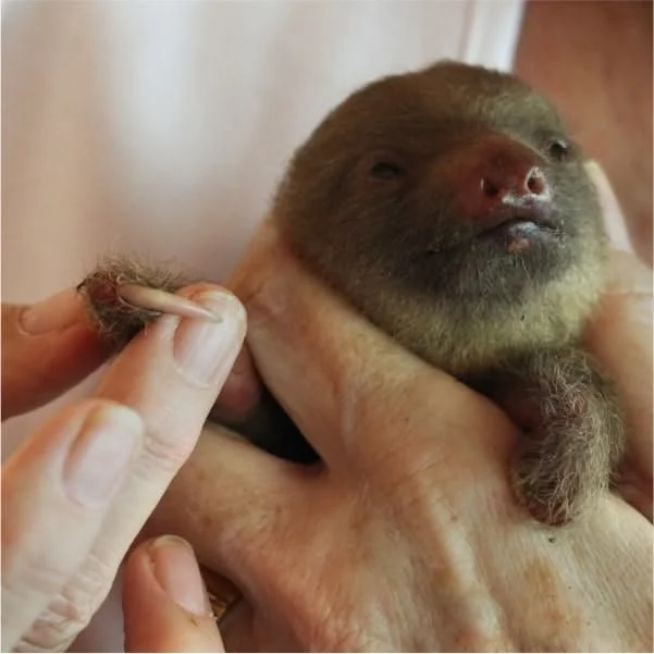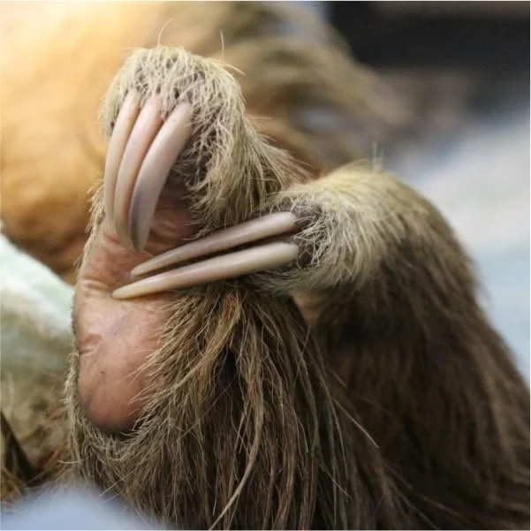 Captive sloths must have their nails trimmed regularly so that their fingers and toes do not become overgrown and disfigured.