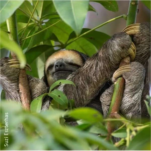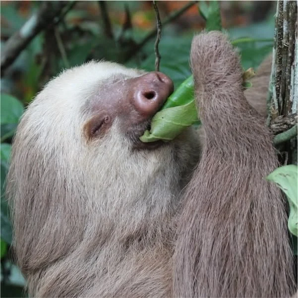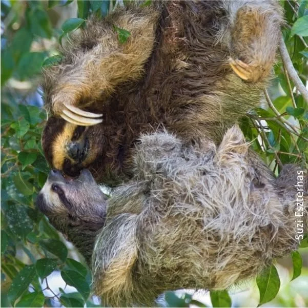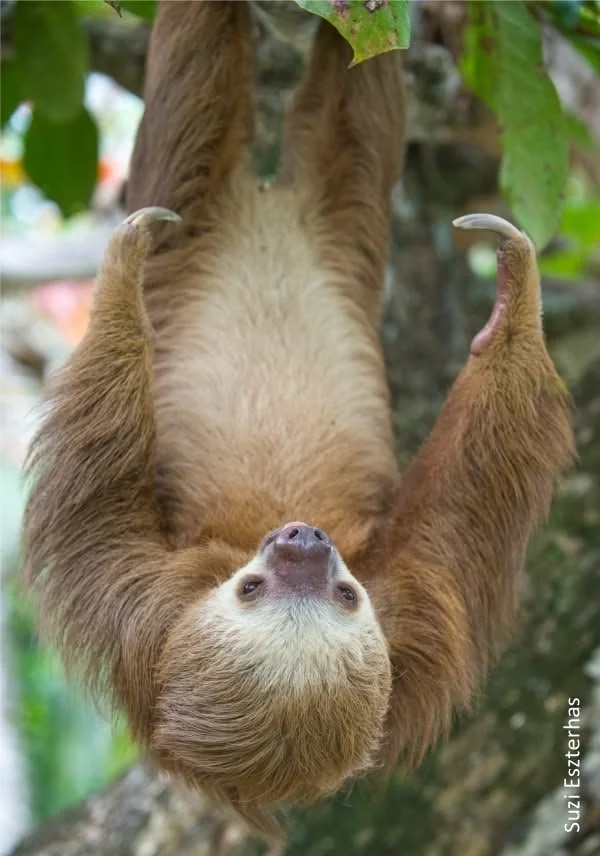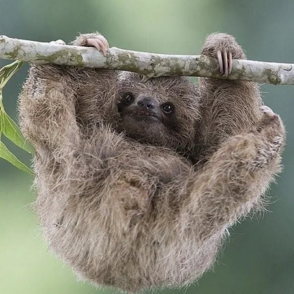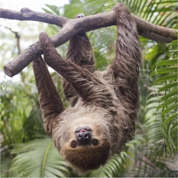 Sloths have long hook-like fingers and toes that allow them to hang suspended from a branch without using any energy. They can eat, sleep, and give birth in this position, sometimes even remaining like this after death.