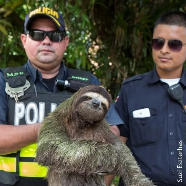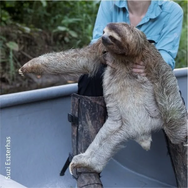 Sloths are facing a long and sad list of threats including deforestation, power line electrocutions, dog attacks, poaching, road collisions, human cruelty, and global warming.