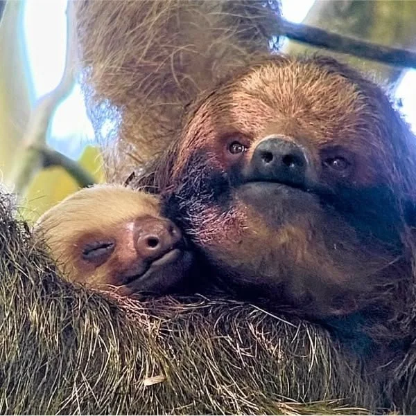 Male sloths are not involved in raising their young, so the female sloth will spend the next year of her life raising her baby alone.